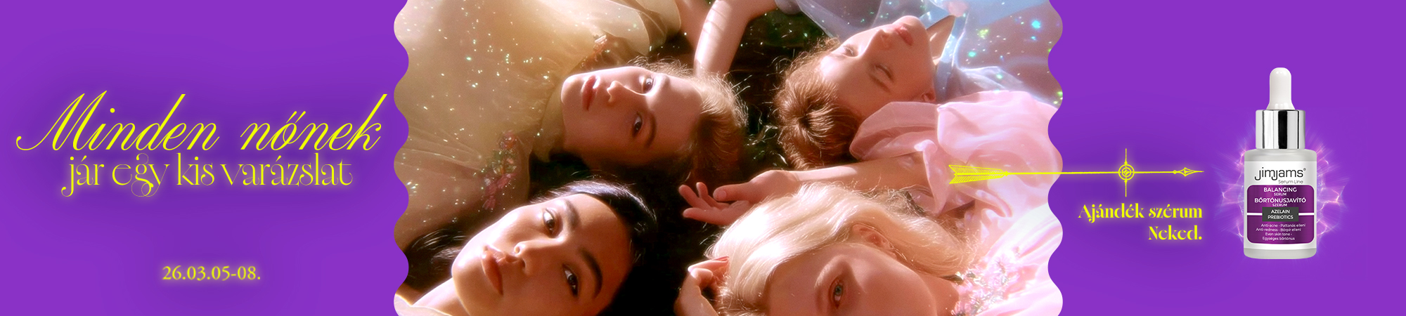 Miért a JimJams? Mert hiszünk benne, hogy a profi bőrápolás nem luxus, hanem a legjobb befektetés önmagadba. Tiszta hatóanyagok, bizonyított hatékonyság és szakértő gondoskodás – minden cseppben azért, hogy magabiztosan ragyoghass minden nap. Fontos tudnivalók: Az akció 2026. március 5. és 8. között érvényes. Használd a kuponkódot a kosárnál az ajándék szérumhoz: RAGYOGJ2026